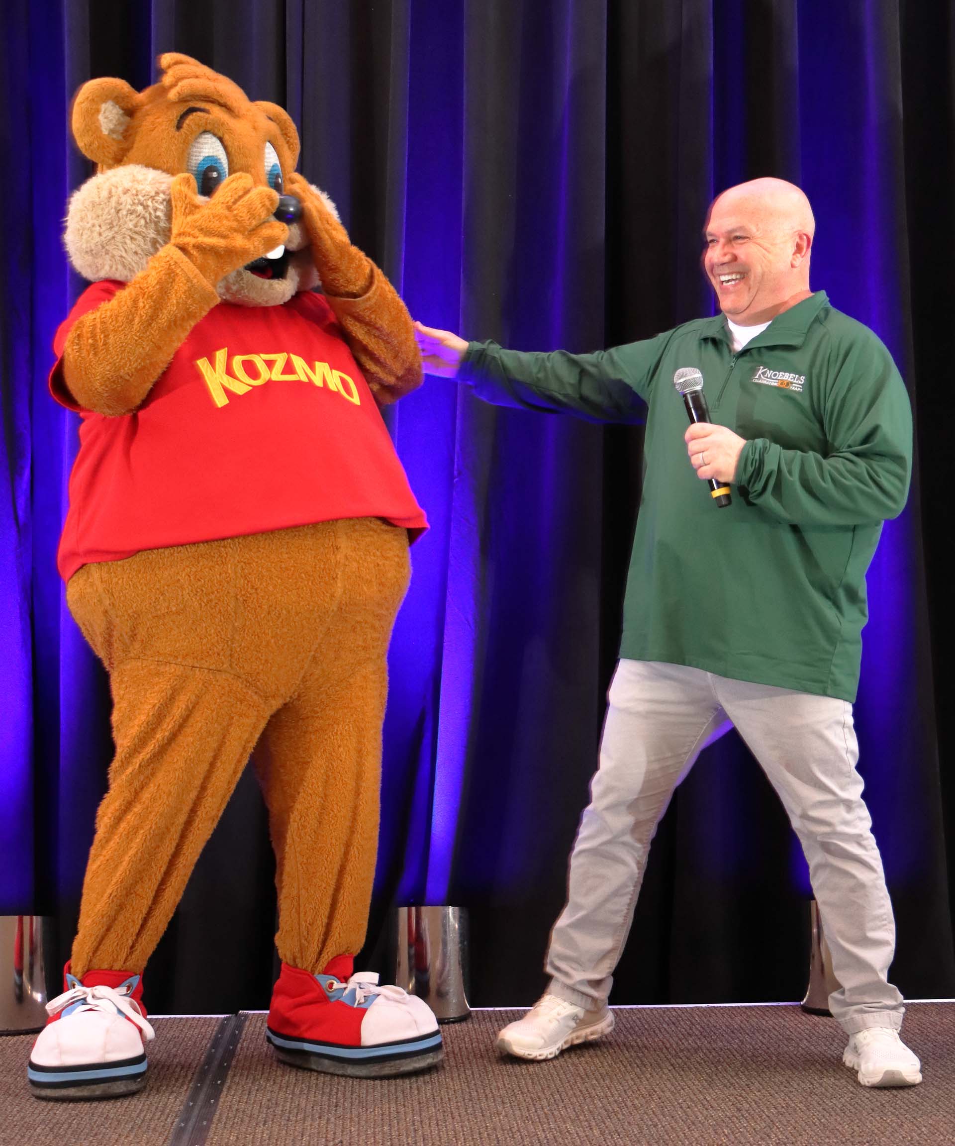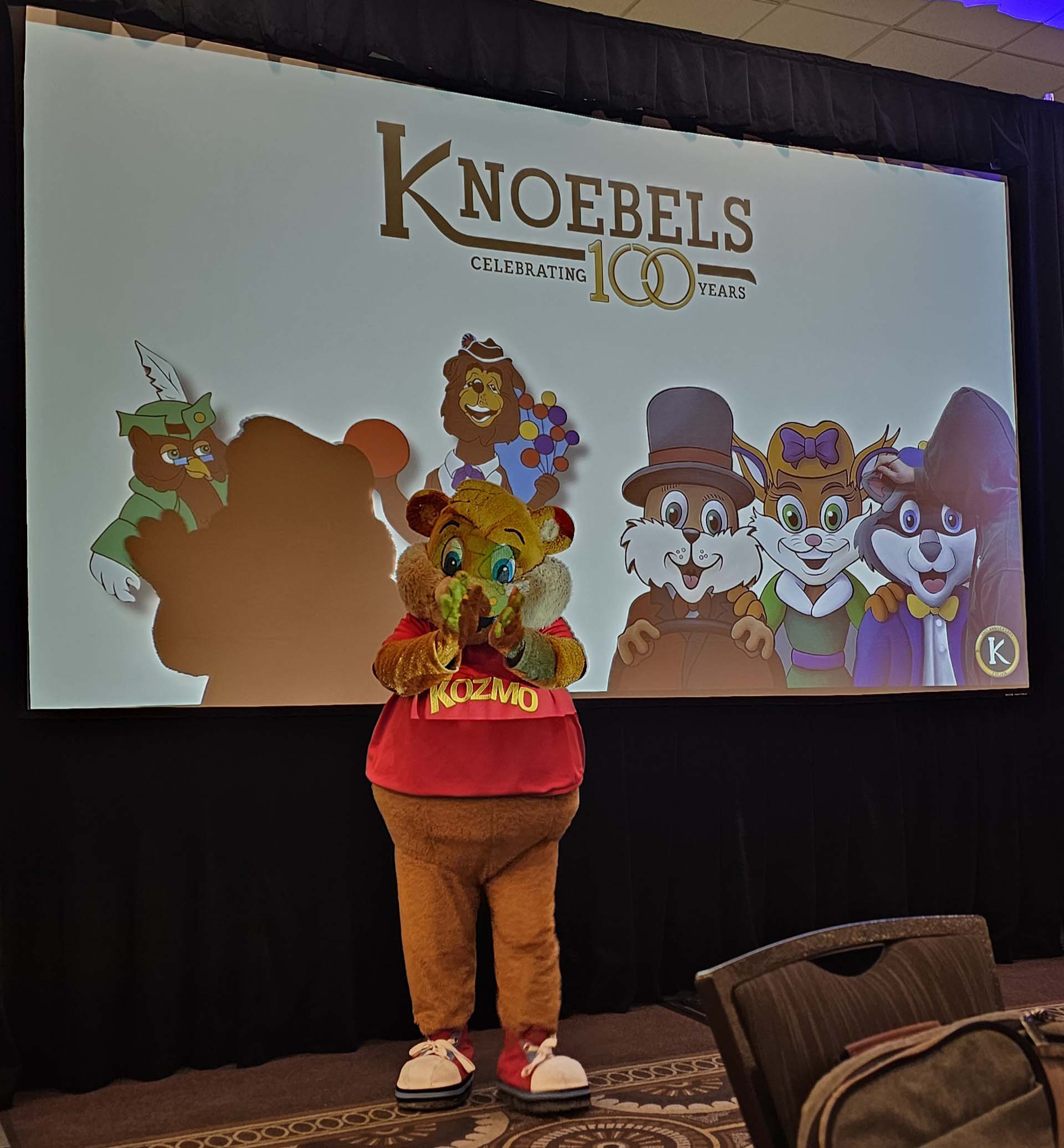 Brian and Rick Knoebel and Kosmo, the Knoebel mascot, brought good news (and auction items) from the family park, Knoebels Amusement Resort, in Elysburg, Pennsylvania. 2026 will mark 100 years for Knoebels, and lots of celebrations are planned, including the Eastern Pennsylvania event ACE Flies With Knoebels 100 in July.