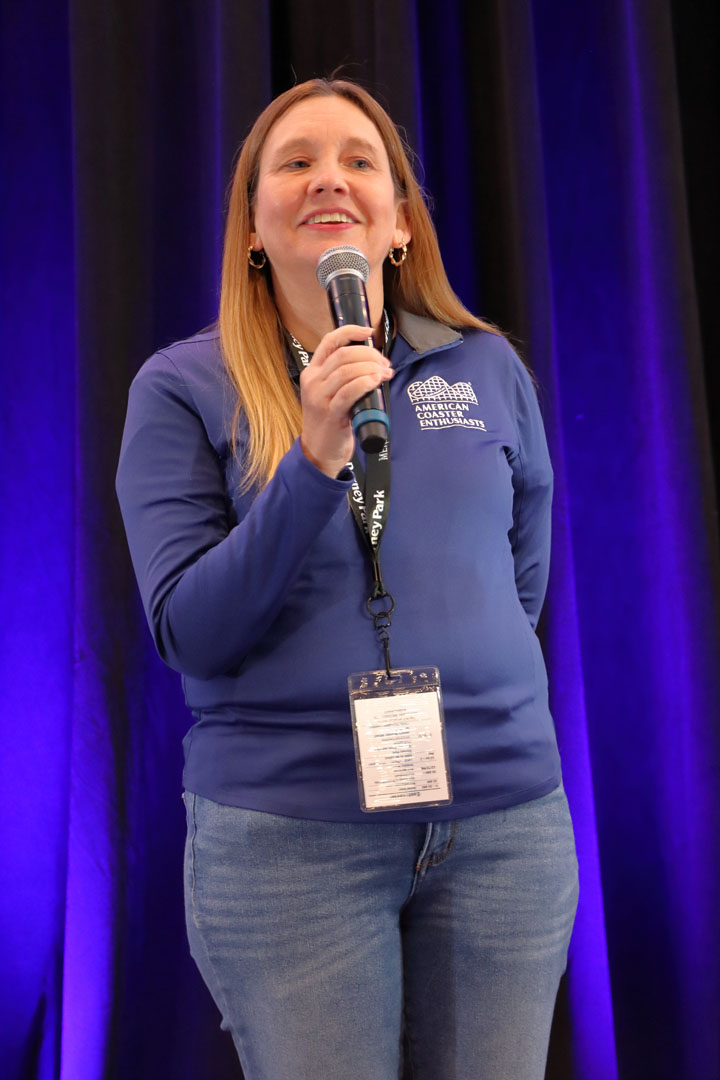 ACE’s president, Elizabeth Ringas, was next with an update. ACE now has more than 7,200 members and in 2025 received $40,000 in donations and donated $25,000 to various preservation efforts. Also in 2025, ACE originated the Centennial Award for coasters that are 100 years old; Giant Dipper at Belmont Park (San Diego, California) was the first recipient. Three new Roller Coaster Landmark plaques were awarded (to Shockwave at Six Flags Over Texas, American Eagle at Six Flags Great America and Vuoristorata at Linnanmäki).