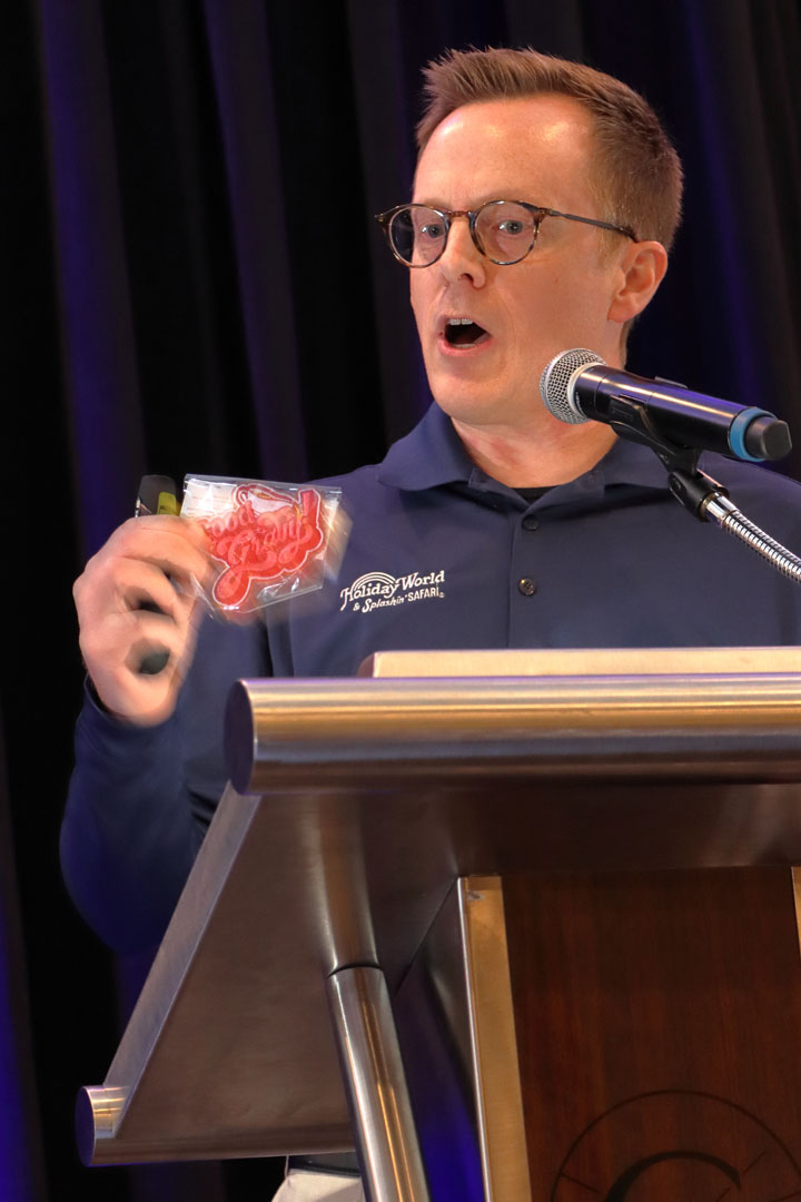 Eric Snow, vice president and chief marketing officer at Holiday World & Splashin’ Safari in Santa Claus, Indiana, brought lots of news. After reviewing 2025, Snow provided 2026 updates, including the fact that the park is celebrating 80 years in 2026. Another anniversary prompted an amusing video, “The Diary of Phil,” which celebrated the park’s 25 years of free unlimited soft drinks. New portals have been created to introduce each of Holiday World’s “holidays” in the park. The Dinos in the Sky drone show will return as well.